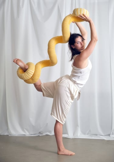 Each object is designed to create comfort, softness, and human presence. It's more than a decorative piece, it’s a companion - made for warmth, play, and support. Its form invites touch and closeness, creating an embracing environment where body and object connect.